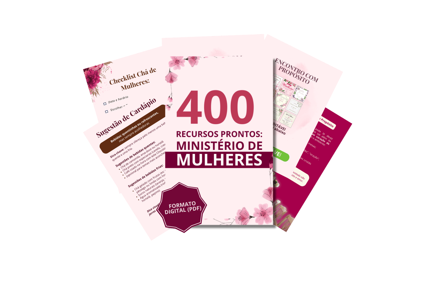 Com este material você terá ferramentas necessárias que poderá colocar em ação imediatamente e fortalecer seu Ministério de Mulheres