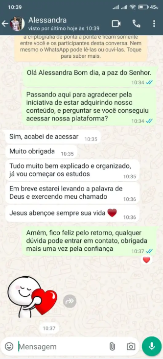 Você receberá GRATUITAMENTE o nosso elogiado Guia Prático – Discipulado Feminino, um material direto, dividido em etapas e simples de aplicar. Ideal para conduzir encontros de discipulado com profundidade e clareza. Antes vendido separadamente por R$19,90. Agora incluso sem custo adicional, somente nesta oferta especial!